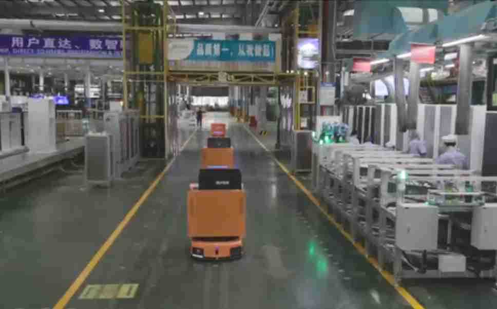 为车载冰箱物流配送打造的智能解决方案,,包含产中物流通过潜伏举升AMR搬运至线边,,产后成品物流智能仓储,,流程包含产中物流智能齐套入库,,线边安灯叫料AMR智能配送至线边,,成品入库、、、、出库,,,,通过无人堆高车机器人,,,智能仓储管理替代人工作业管理,,,,实现更高存储、、、、更高效率、、、更具柔性化的解决方案。。。。